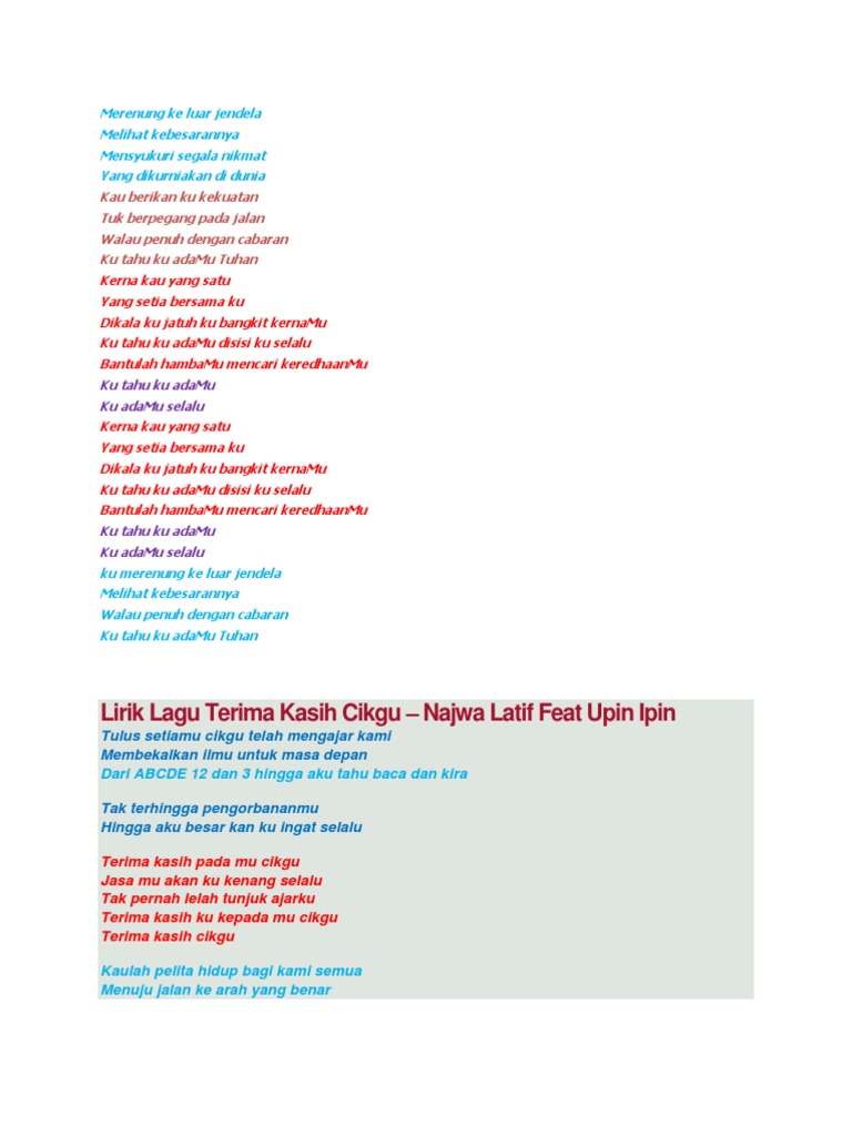 Lagu Merenung Keluar Jendela